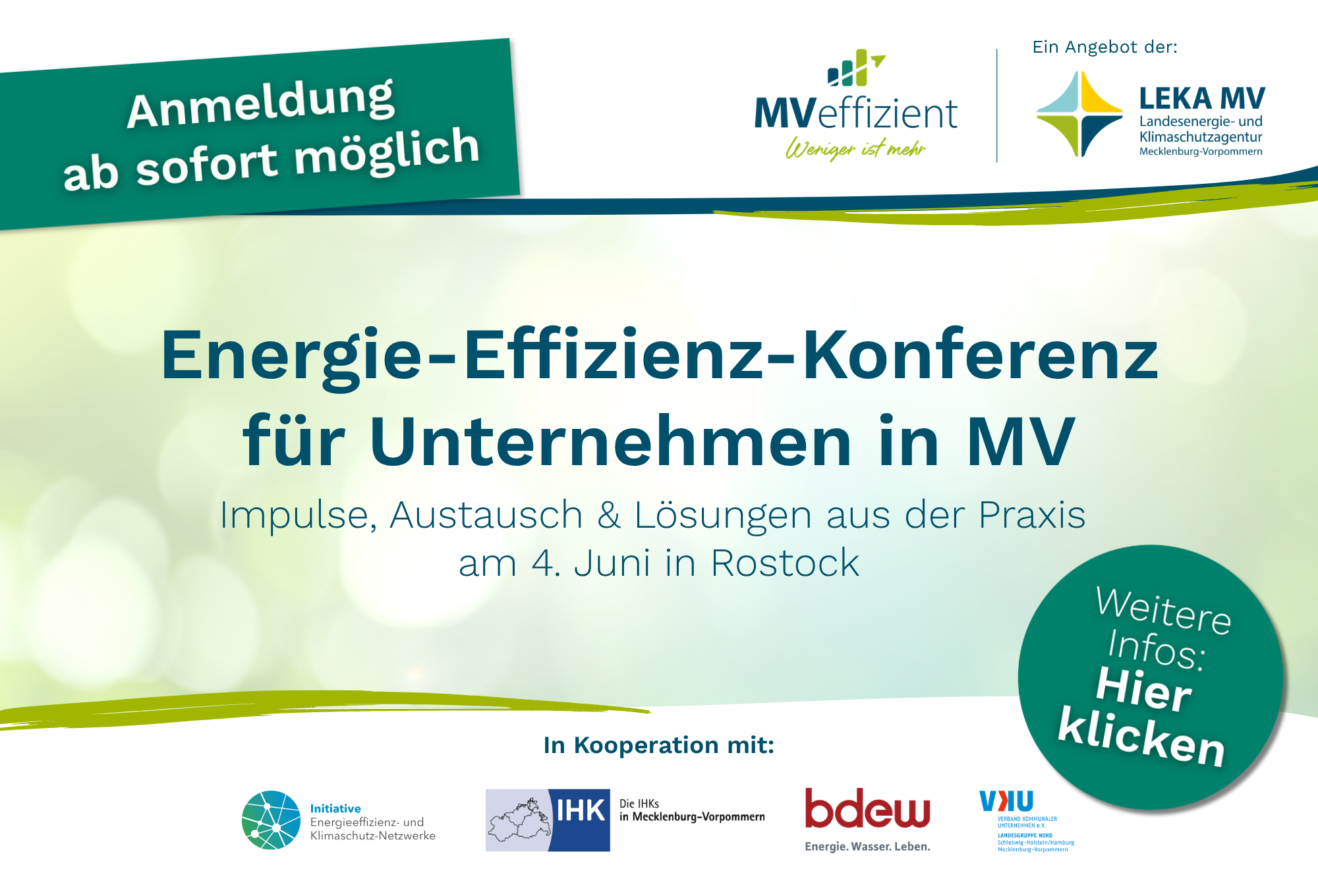 Seien Sie dabei, wenn MVeffizient in Kooperation mit der Initiative Energieeffizienz- und Klimaschutz-Netzwerke, den IHKs in MV, dem Bundesverband der…