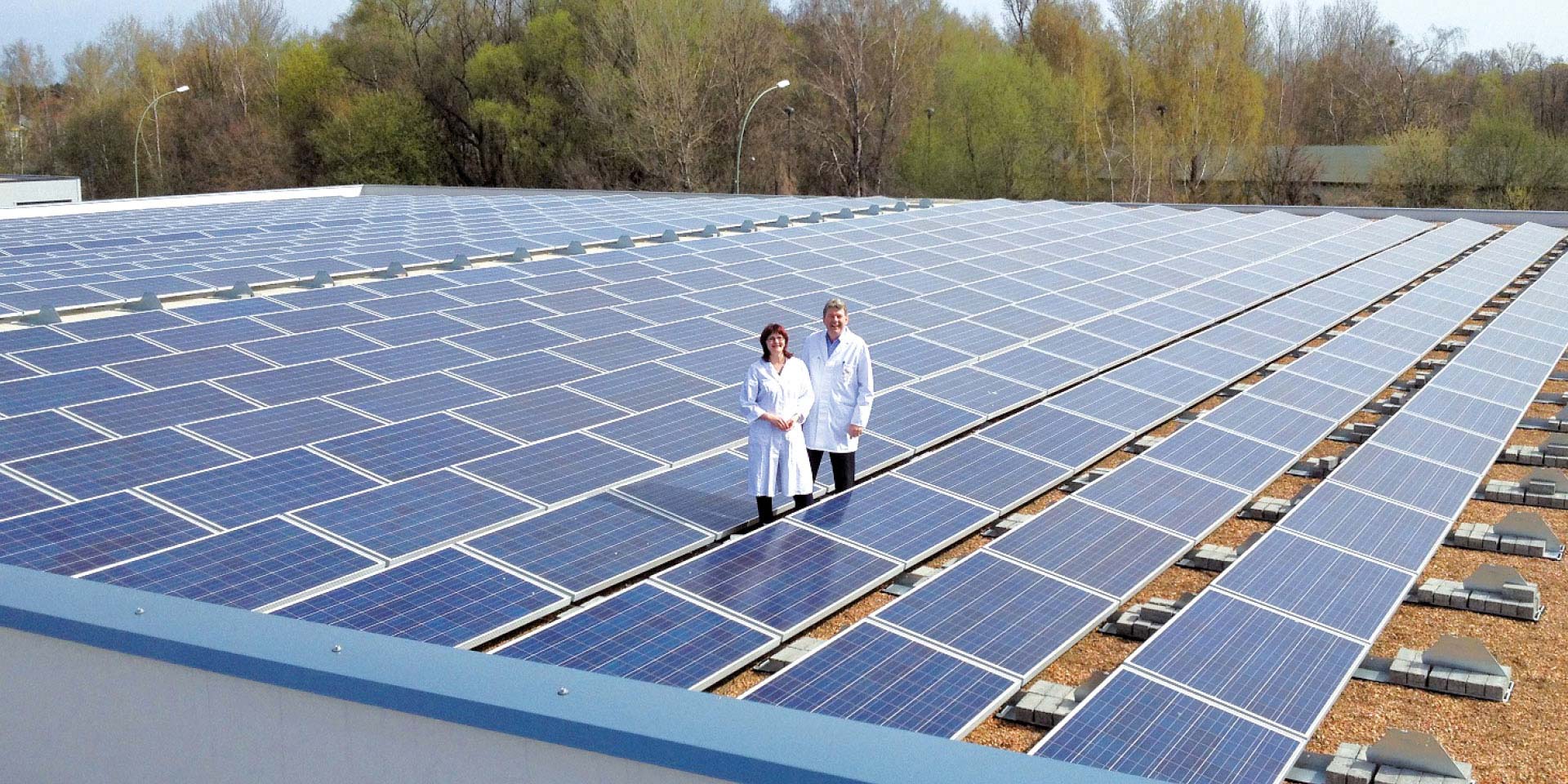 Auf dem Dach der Eismanufaktur erzeugt eine große Photovoltaikanlage einen erheblichen Teil des Strombedarfs direkt vor Ort. Florida Eis setzt das Motto „Wir machen aus Sonne Eis“ praktisch um, indem rund 30 Prozent des benötigten Stroms über die eigene PV-Anlage gedeckt werden, während der restliche Bedarf über zertifizierten Ökostrom abgedeckt wird. Daneben erzeugt eine Solarthermie-Anlage warmes Wasser. Dieses nutzt eine sogenannte Adsorptionskältemaschine wiederum, um kaltes Wasser zur Kühlung der Eismaschinen und für die Klimatisierung zur Verfügung zu stellen. Durch das Zusammenspiel der Komponenten (inklusive sehr guter Dämmung) konnte Florida Eis inzwischen eine CO₂-neutrale Produktion erreichen und über Jahre hinweg mehrere Tausend Tonnen CO₂ einsparen.