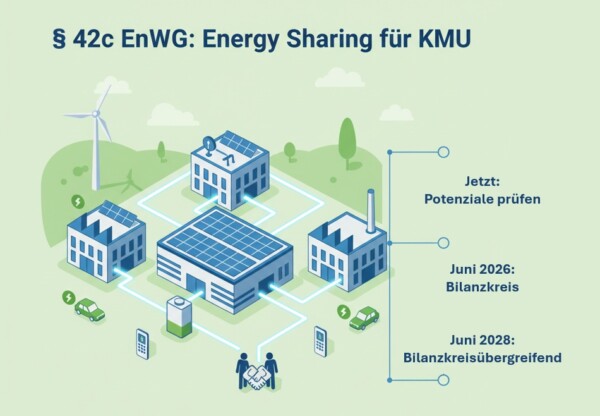 So können KMU die neuen Energy-Sharing-Regelungen schrittweise in ihre Energie- und Investitionsstrategie integrieren, ohne sich auf kurzfristig unsichere Rahmenbedingungen zu verlassen – und sind bereit, wenn sich ab 2028 attraktive Community-Modelle etablieren.