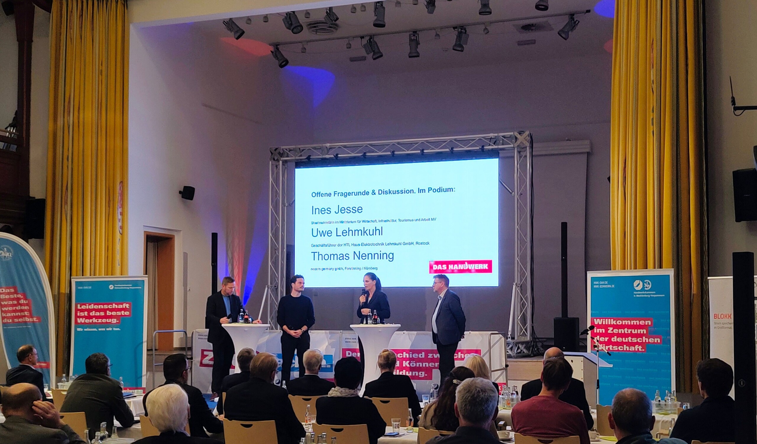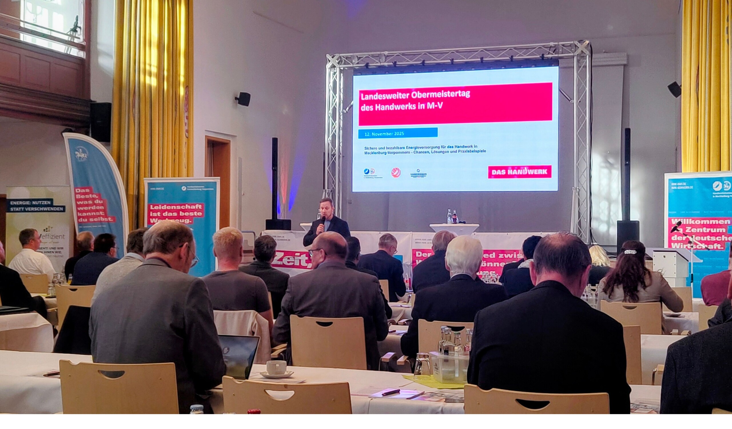 Und genau deswegen waren wir gestern beim Obermeistertag2025 der Handwerkskammer Schwerin, der Handwerkskammer Ostmecklenburg-Vorpommern und des Landesverbandes der Kreishandwerkerschaften MV in Güstrow dabei. Denn da stand gestern die Frage im Mittelpunkt, wie sich Handwerksbetriebe in Mecklenburg-Vorpommern energiewirtschaftlich stabiler und zukunftsfähiger aufstellen können. Vertreterinnen und Vertreter der Handwerksorganisationen diskutierten über aktuelle Belastungen durch Energiepreise, Bürokratie und steigende Kosten – und über neue Lösungsansätze, die regional umsetzbar sind.